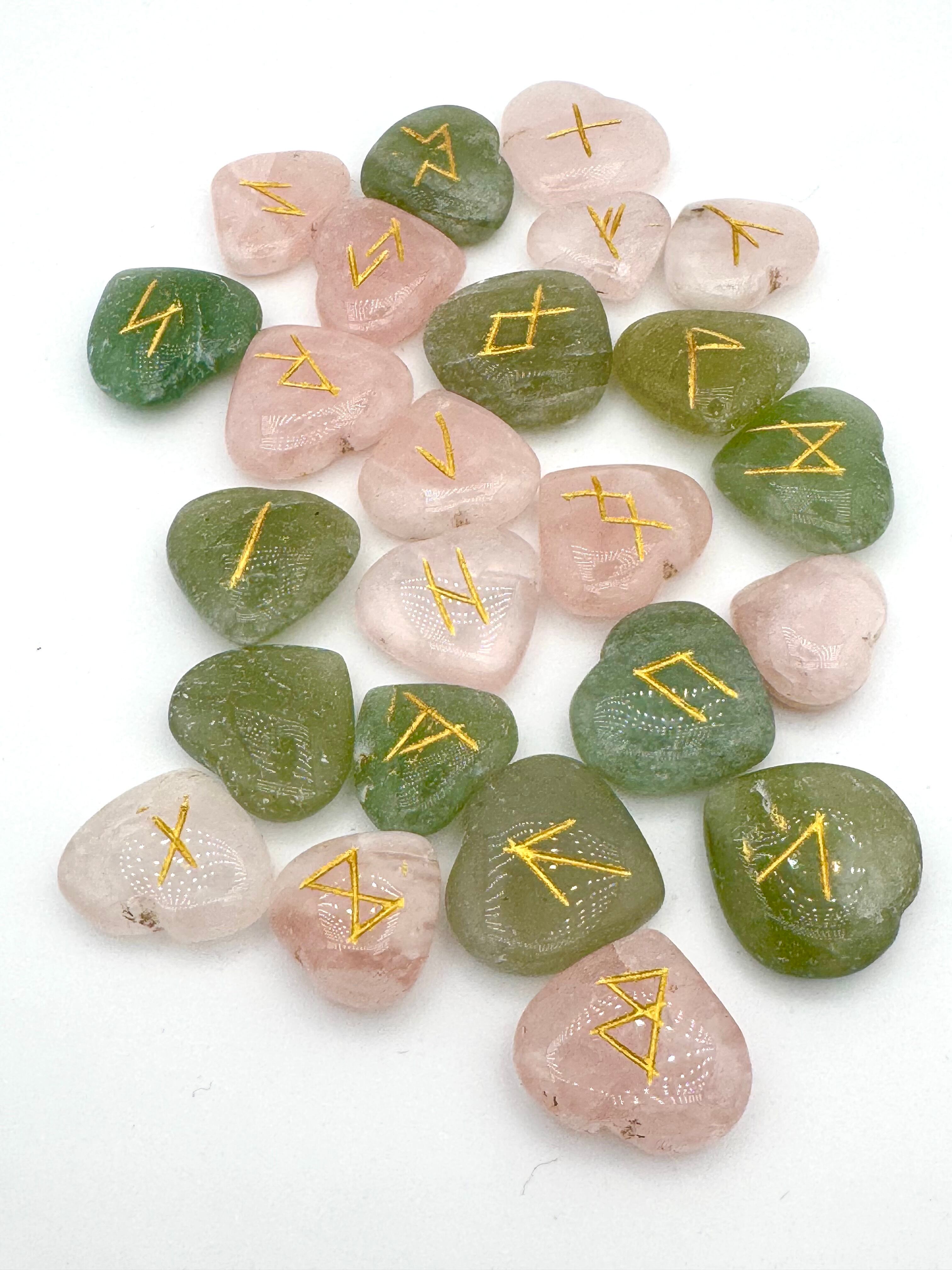 ローズクォーツ&グリーンアベンチュリンのハート型ルーンが、あなたの心を深く包み込み、愛と癒しの波動を高めます。