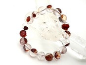 透明度の高い水晶の中に赤い煌めきを宿した、ファイヤークォーツ(ヘマタイトインクォーツ)の10mmブレスレットです。内包されたヘマタイトが光を受けて鮮やかに輝き、手元に炎のようなエネルギーを宿すかのように存在感を放ちます。