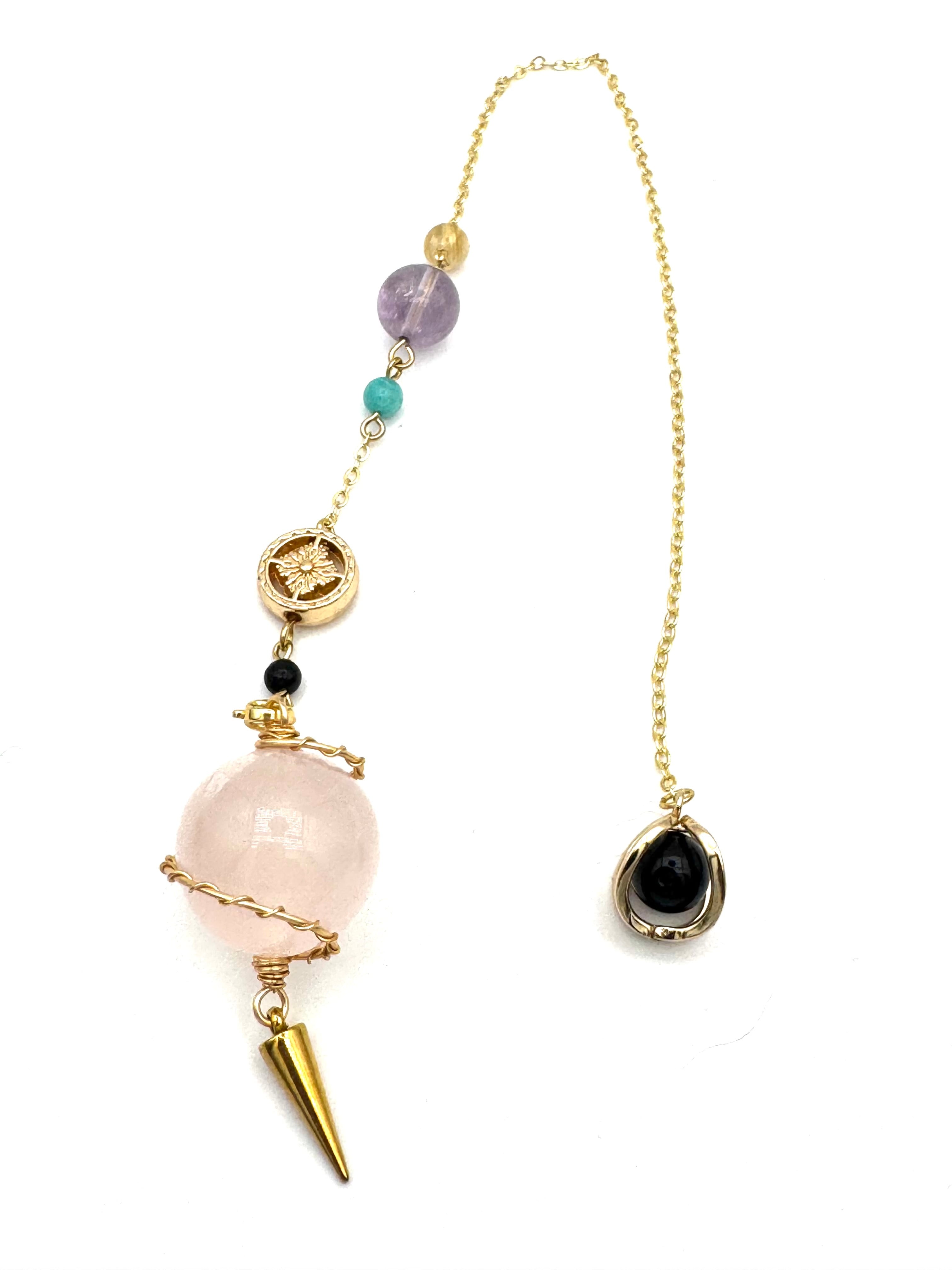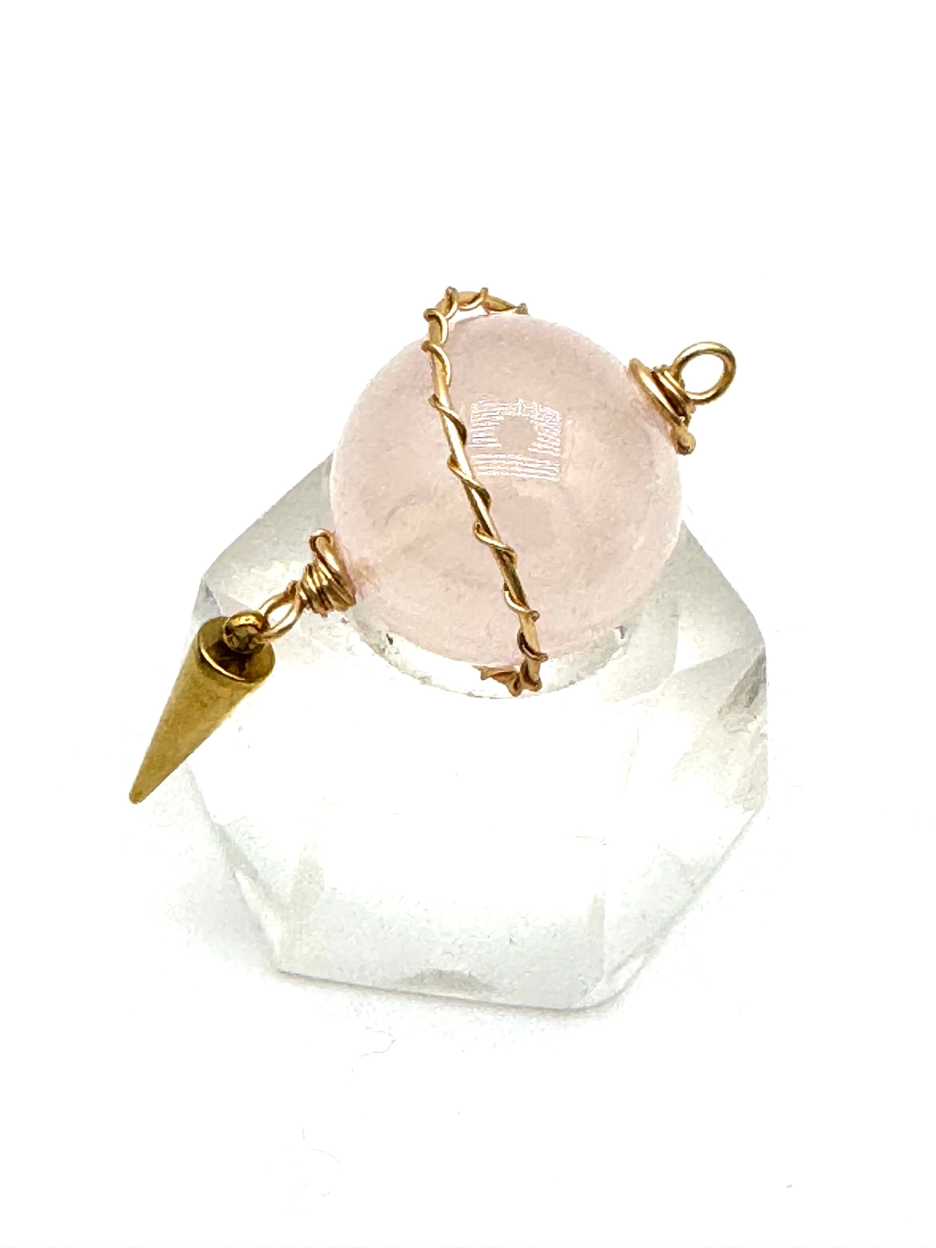 柔らかなピンクがまるで春の風のように優しく心を包み込む、ローズクォーツのペンデュラム。