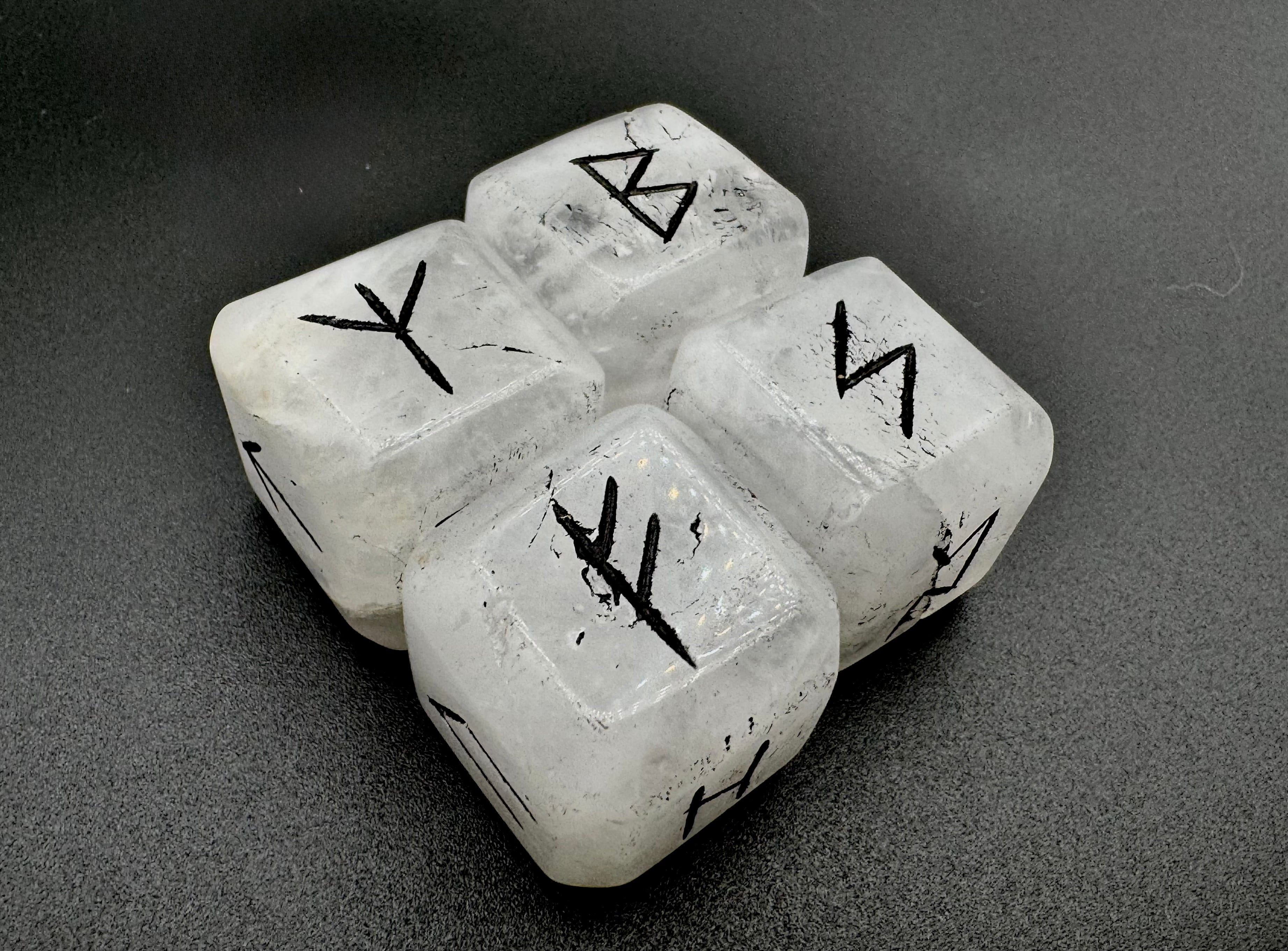 こちらは、ホワイトジェイドを贅沢に削り出した特大サイズのルーンダイスセットです。ブランクルーンを除いた全24文字が刻まれており、ルーン占いや瞑想、リーディングに本格的に取り組みたい方にふさわしい逸品となっています。