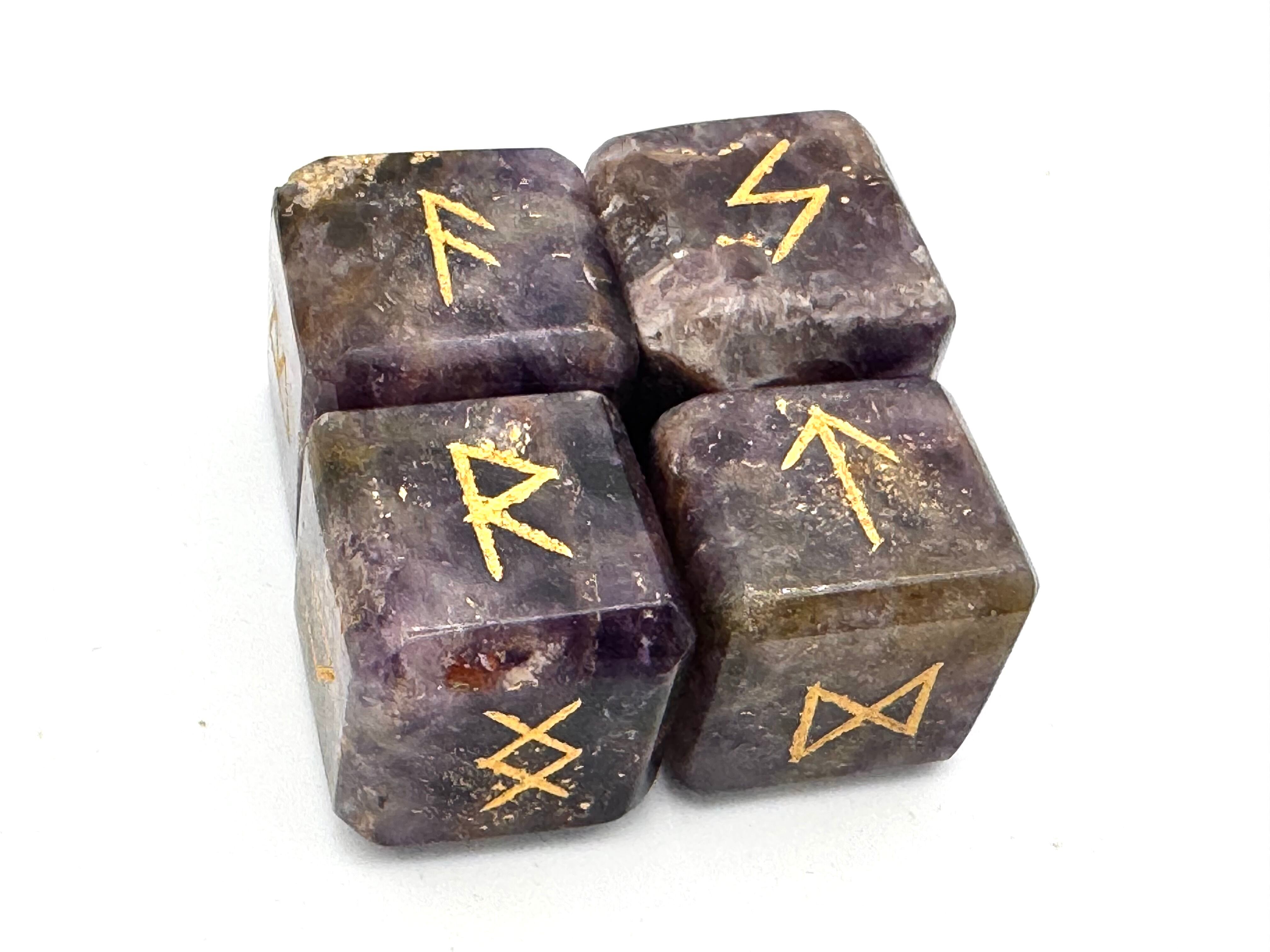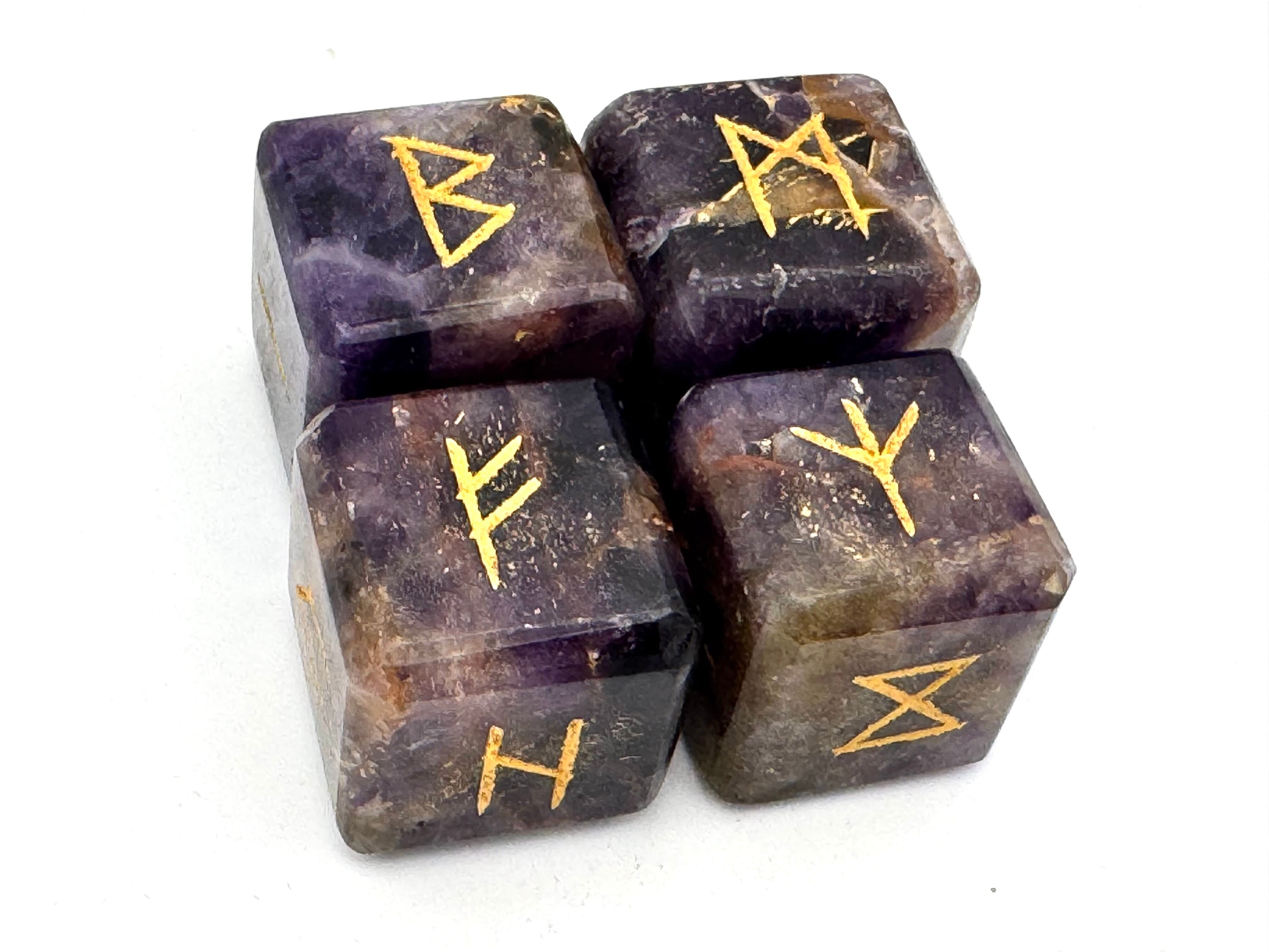 深い紫が印象的なアメジストを用いた、特大サイズのルーンダイスです。アメジストは「誠実」「心の平安」を象徴する石で、心を落ち着け、迷いを払い、真実の愛を守り抜く力を持つと伝えられています。女性の美と健康を守る石としても知られ、内面からの輝きを引き出し、魅力を高めてくれるでしょう。