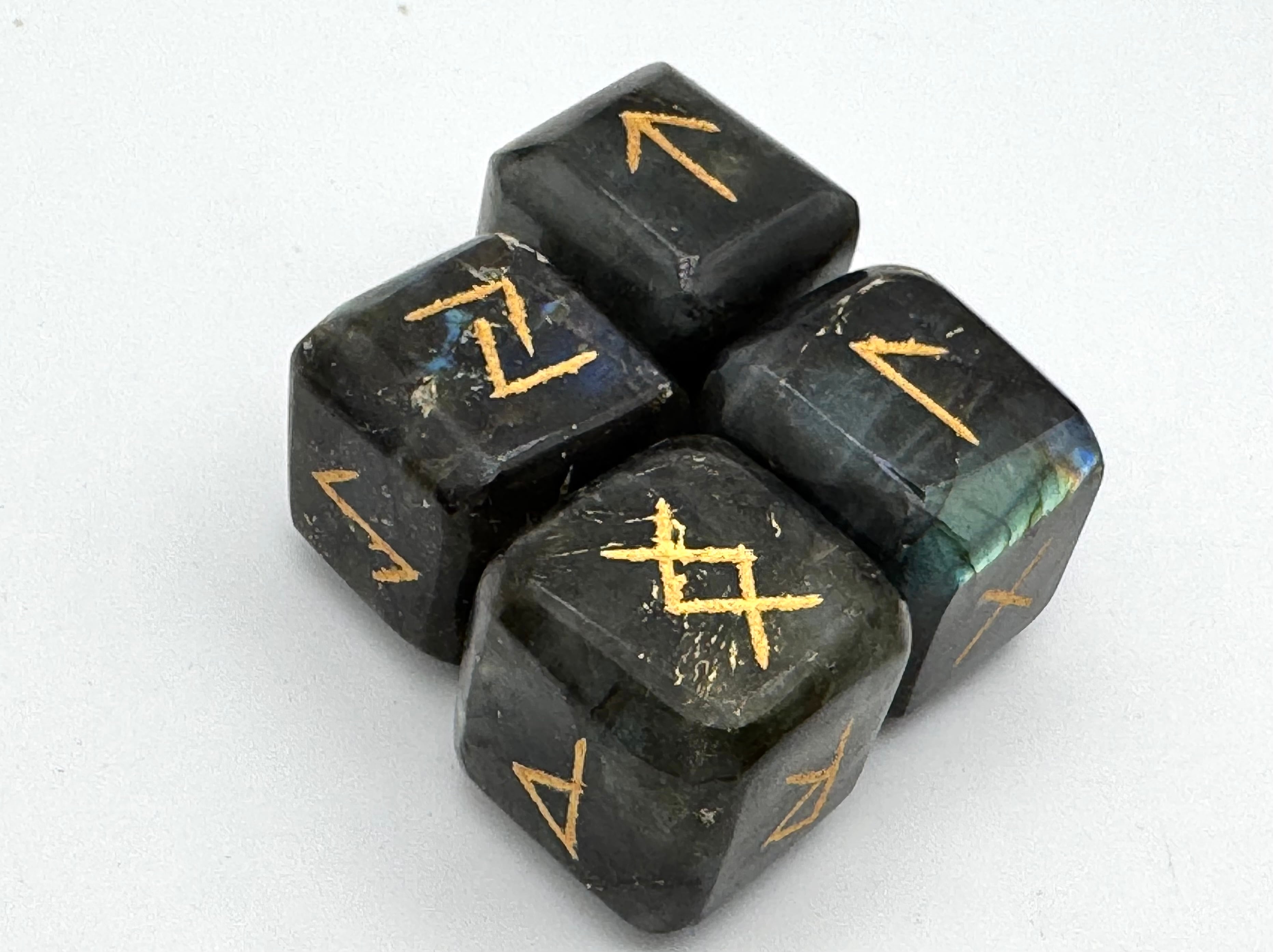 このルーンダイスには、ブランクを除く24文字が刻まれており、転がすたびに偶然を超えた必然の導きを示してくれます。ラブラドライトは直感や洞察力を高め、未来を見通す力を授けるとされており、ルーン占いや瞑想の際に用いることでより深いインスピレーションを得ることができるでしょう。