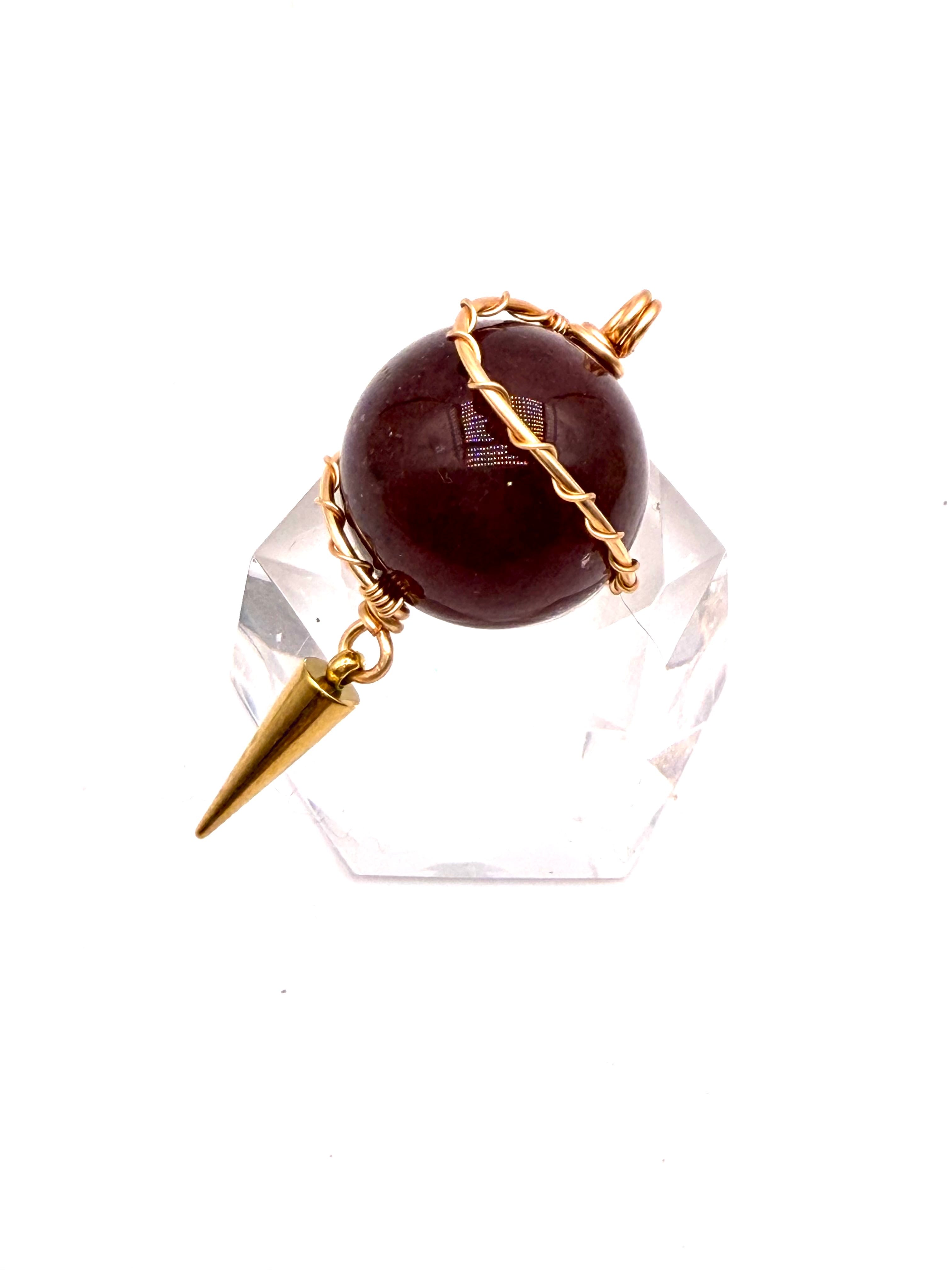 深い赤色にきらめく内包物が星屑のように輝くストロベリークォーツを主役にした、愛と引き寄せに特化したペンデュラムです。ストロベリークォーツは“恋愛運・魅力運”を高める石として知られ、持ち主の心に自信と温もりを与えながら、理想的なご縁を引き寄せるサポートをしてくれます。
