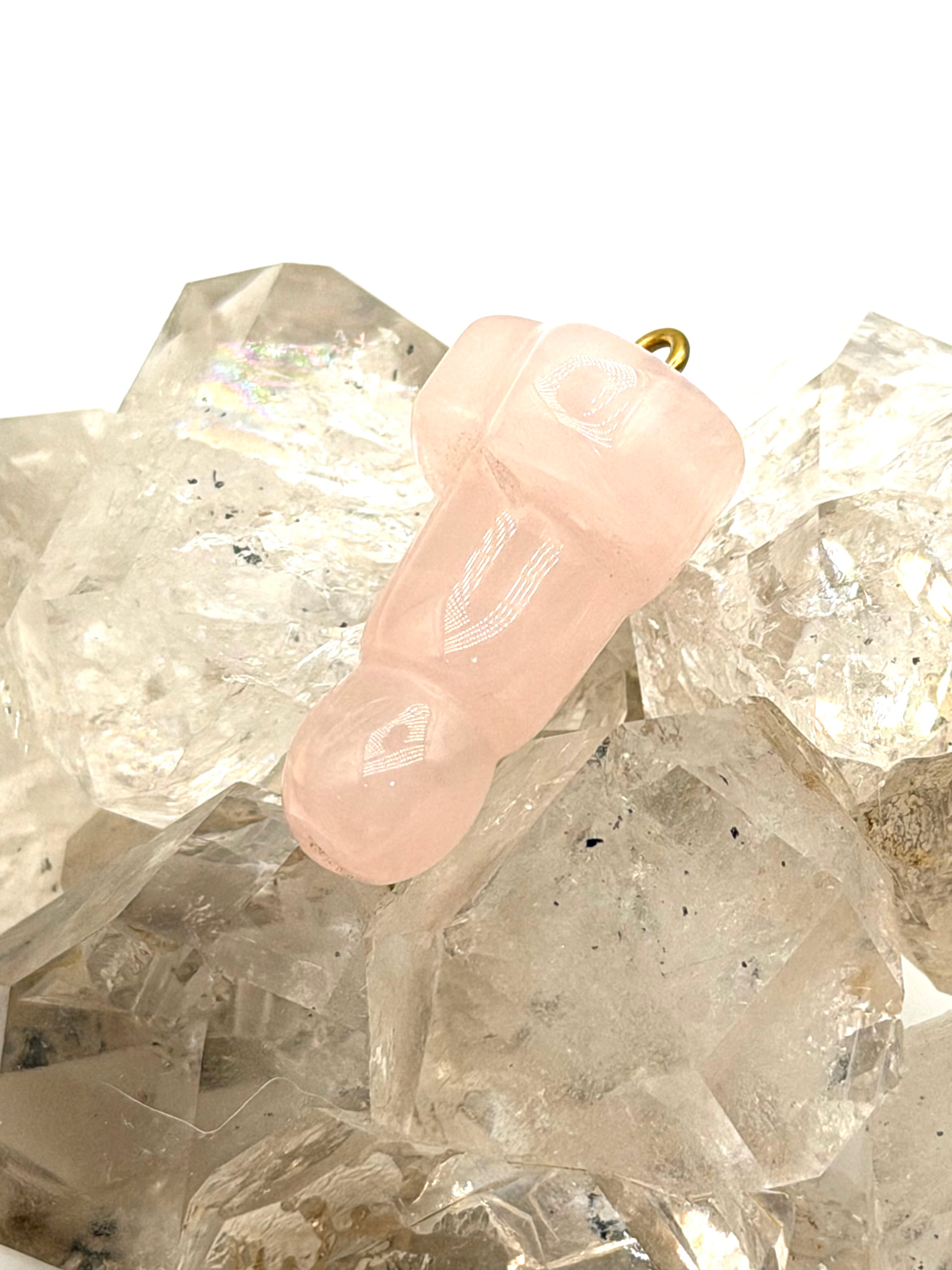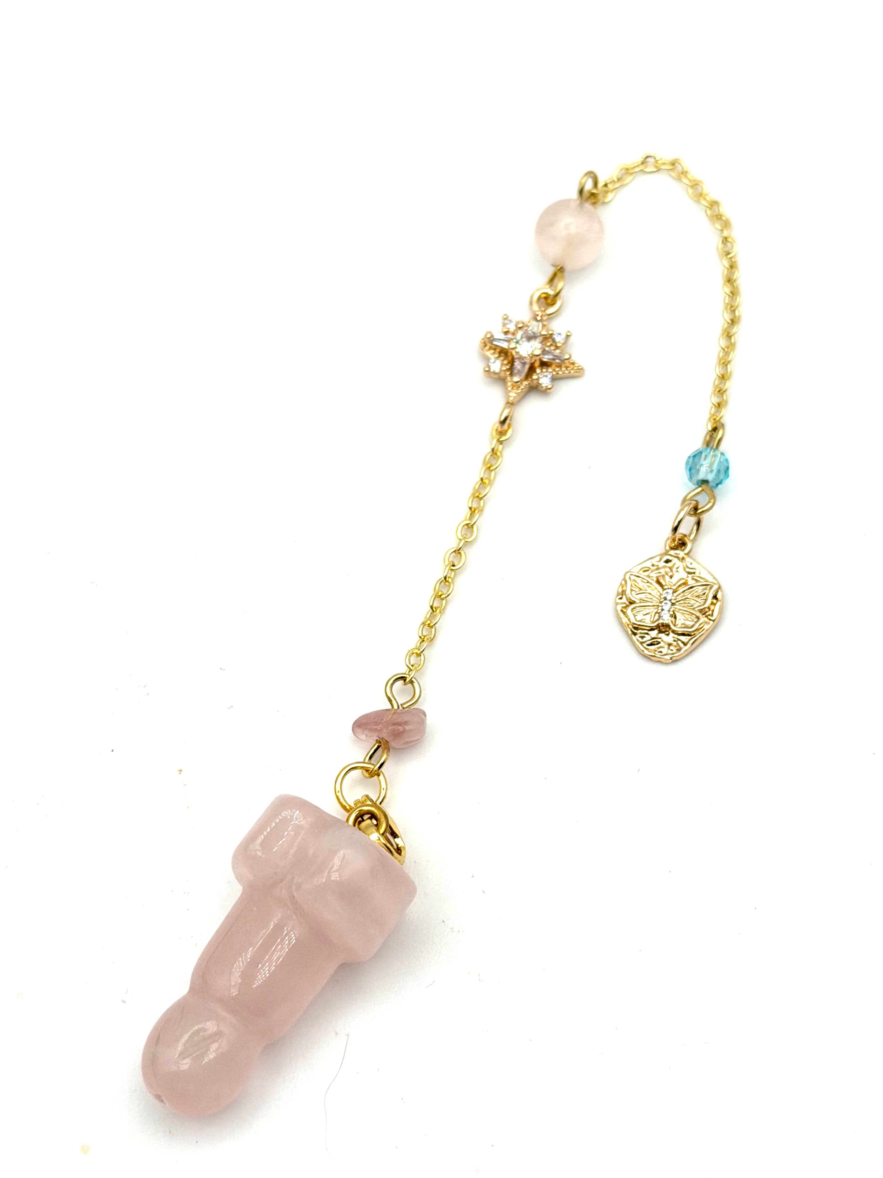 古来より「秘宝」として大切にされてきた象徴的なかたちを、やさしいローズクォーツで仕立てたペンデュラム。