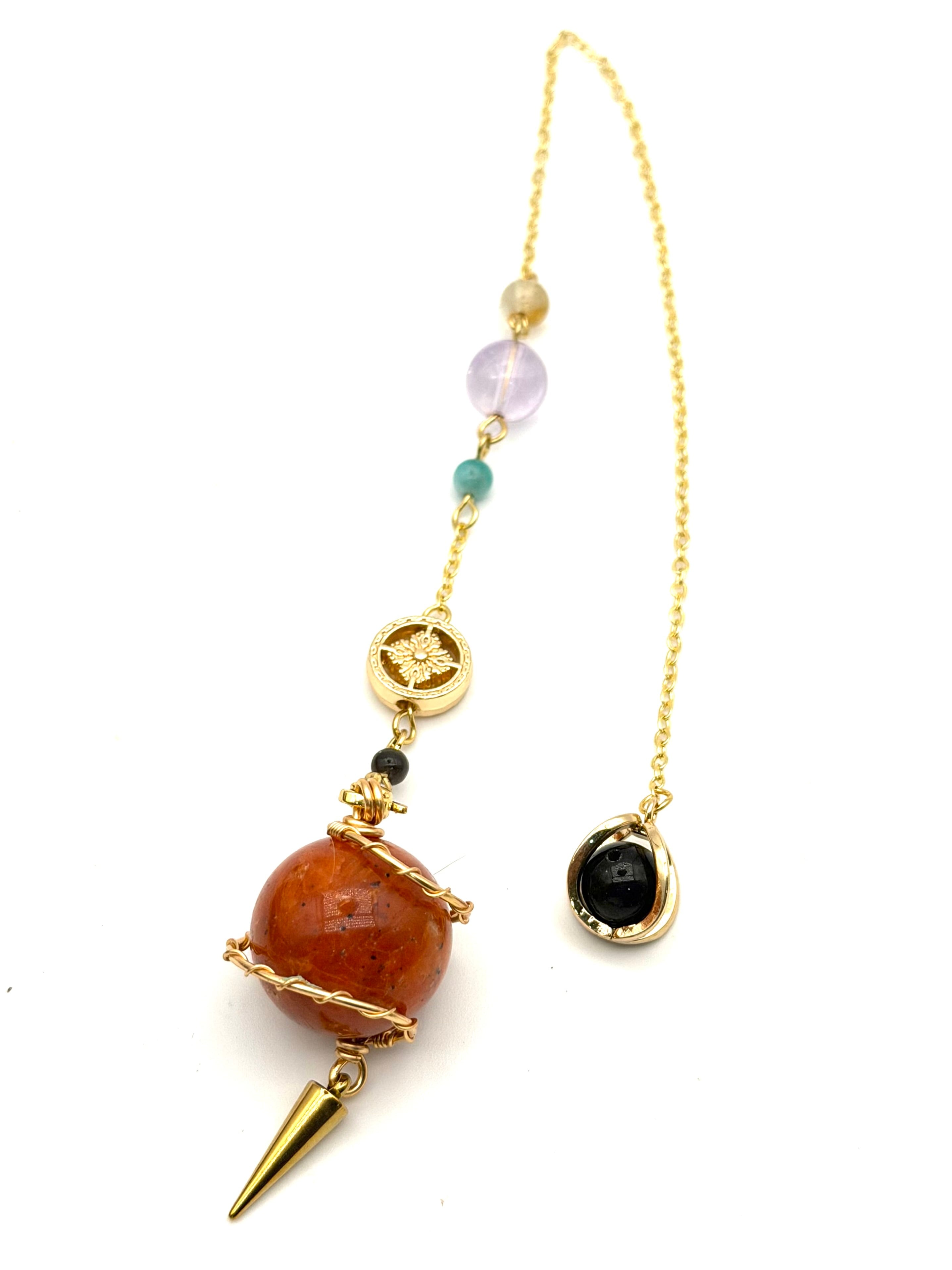 チェーン部分には、定番のオブシディアン・アメジスト・アマゾナイト・シトリンを組み合わせています。守り、安定、調和、豊かさのエネルギーをバランスよく取り入れ、サンストーンの前向きな力をより引き出してくれます。
